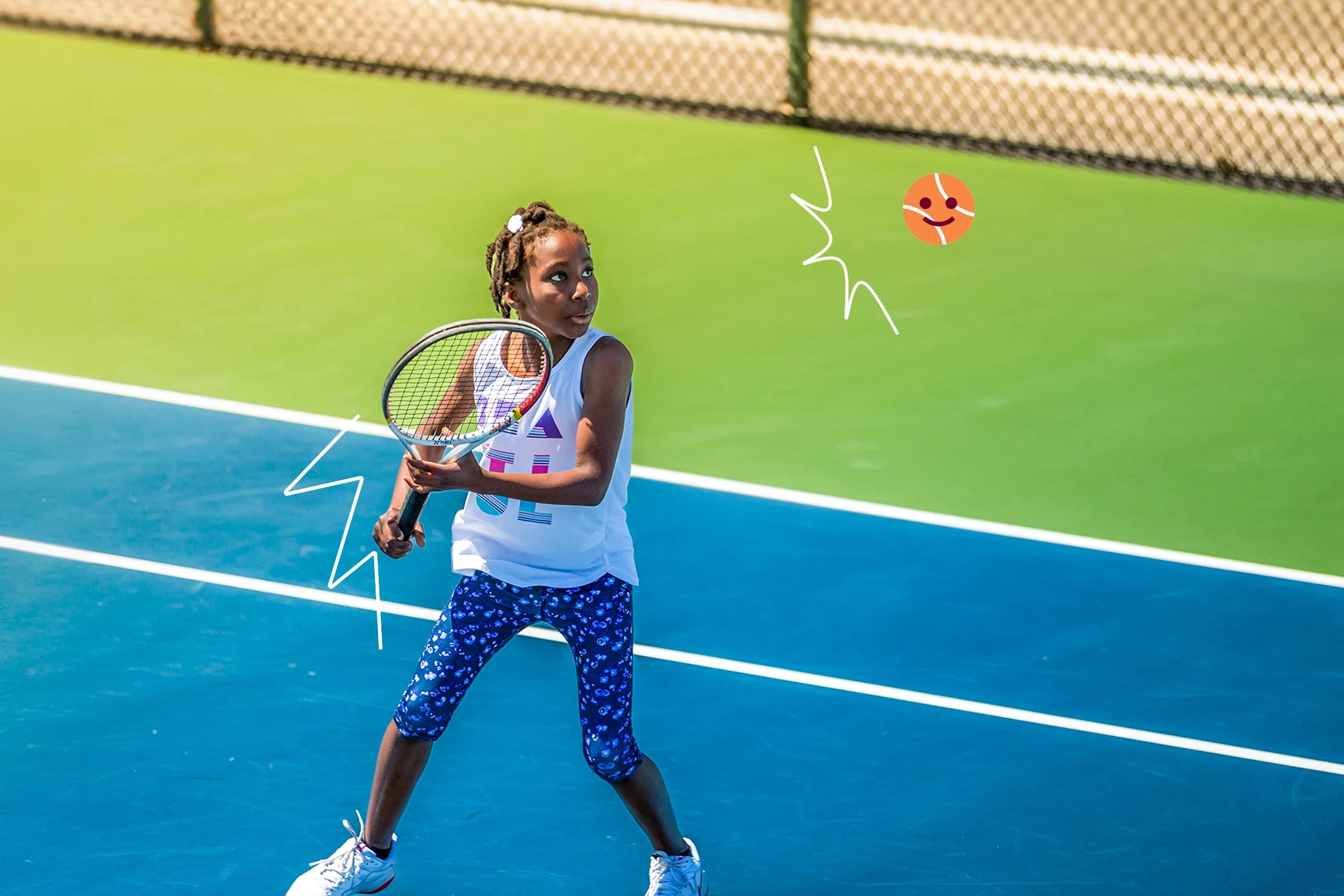 - Ages 8-10 – orange ball; 3/4 court